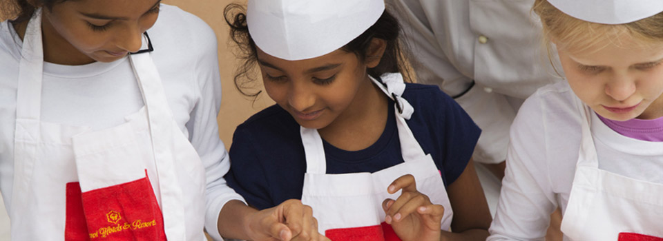 The young guests can be Little Bartenders and learn how to make some refreshing mocktails with our team and have fun while doing it. They can also walk through the gardens with our Naturalist to explore the flora and fauna around and plant a fruiting tree in the hotel premises with the help of our horticulturalist. Children can also experience bathing our elephants Mala and Laxmi. Boys learn safa making in traditional Rajasthani style and girls learn the art of mehndi.